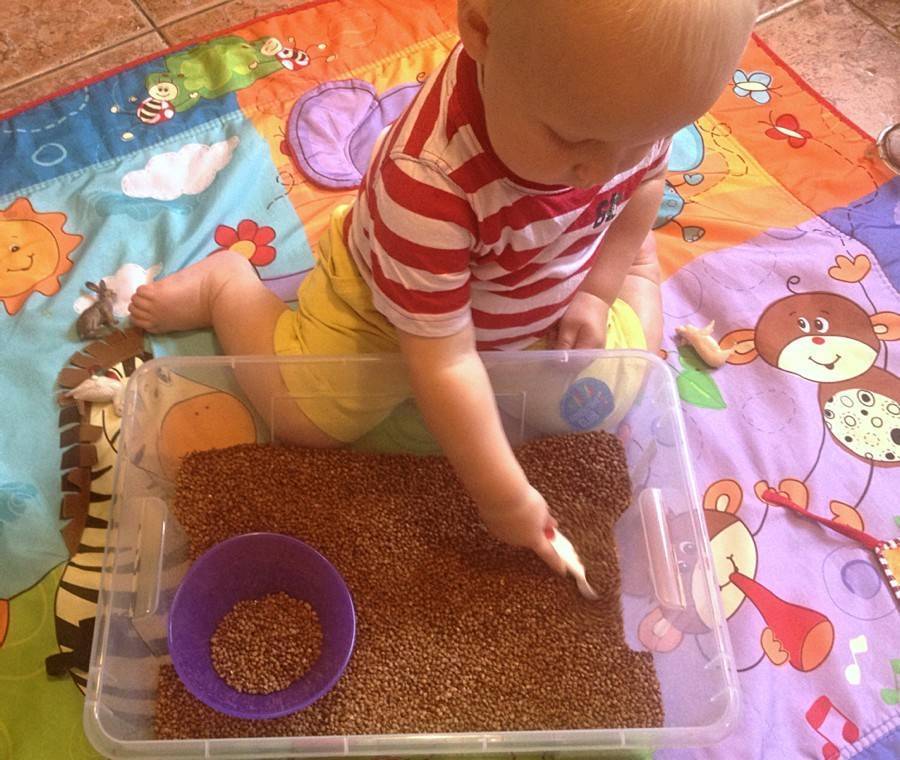 Если же это у него не получится, то можно дать ему большую емкость, куда он сможет ссыпать все крупы по очереди, а потом пытаться отделять их друг от друга. Такая игра еще называется «Золушкой»