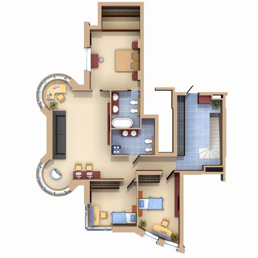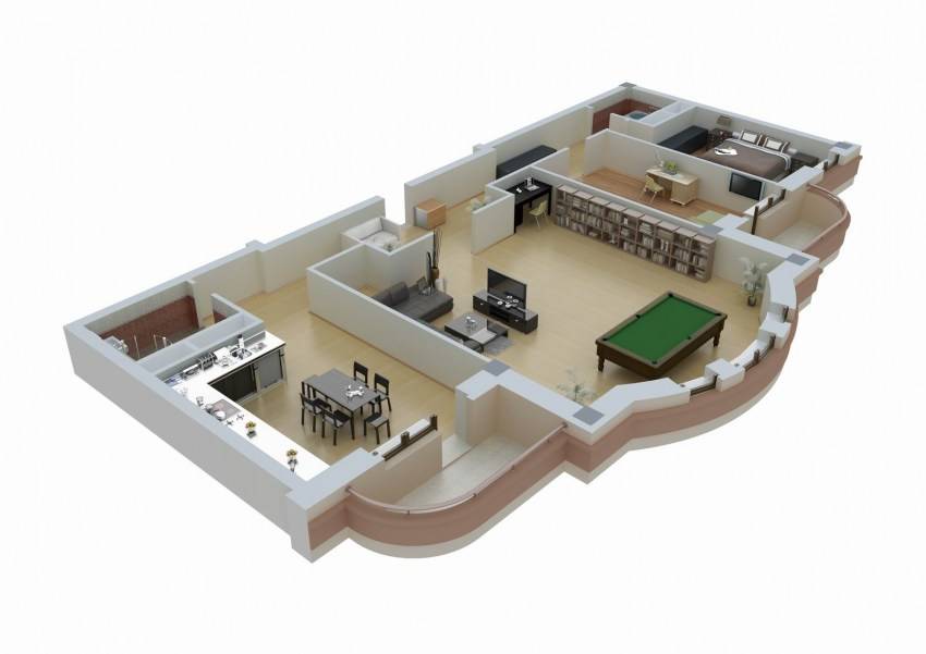 Затем следует разделить комнату на функциональные зоны, и в зависимости от их расположения размещать предметы мебели, технику, элементы освещения. Например, зона отдыха должны быть отделена от рабочей, хотя бы небольшим пространством. Дизайн каждой функциональной зоны может отличаться от соседней, но общее цветовое решение должно быть единым.