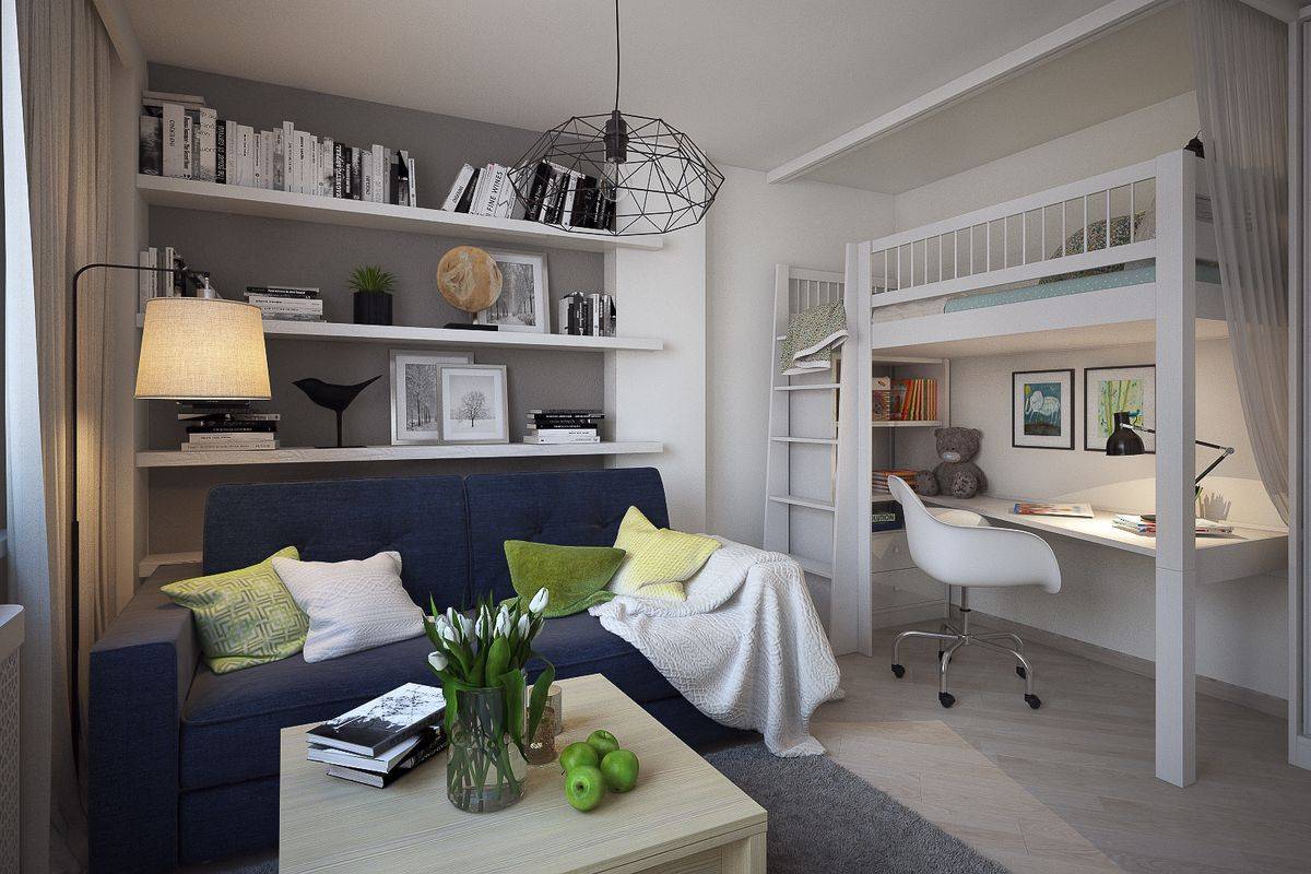 При планировании дизайна разделите комнату на функциональные зоны и разделите их. Зона отдыха должна быть отдельно от рабочей. Не забывайте, что цветовое решение в таком случае должно быть одинаковым.