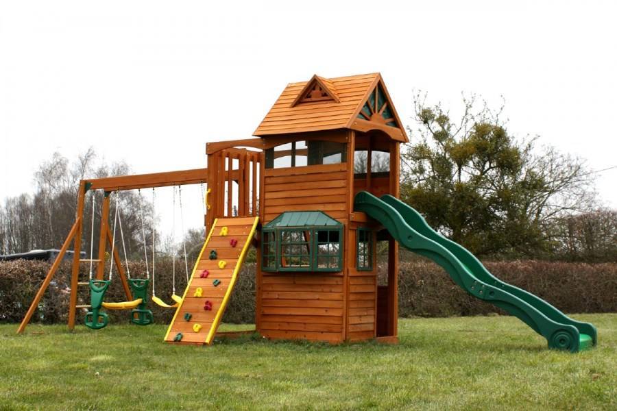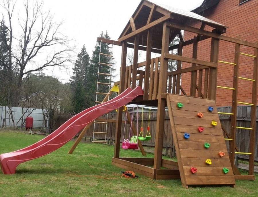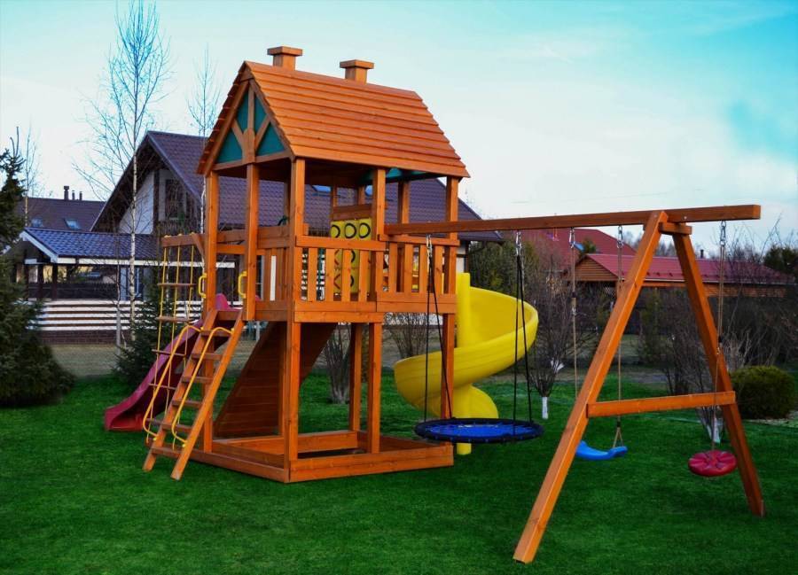На фото детских площадок на дачном участке чаще всего изображены именно они. Эти площадки не только многофункциональны, безопасны, но и очень ярко и красиво выглядят. Их существенным минусом является цена 35-65 тысяч рублей. Более бюджетные варианты с меньшим функционалом обойдутся родителям в 12-20 тысяч.