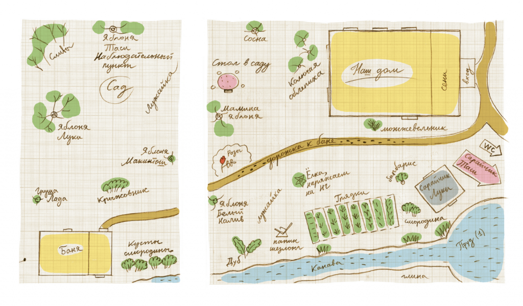 Я зарыл неудачную яму и пошёл перепрятывать. Когда всё было готово, мы разложили перед собой на колоде три плана и принялись их изучать. Тася на ходу придумала свой язык, он был совершенно непонятный, но если вчитаться, то начинало постепенно доходить, что к чему: “Аз нейба житле тапало, нао каповазыте в ронусто ретногосек стаме…”