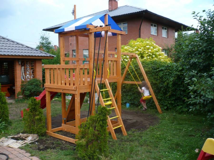 Все эти конструкции можно как сделать самостоятельно, так и купить. Большой популярностью пользуются спортивные комплексы со множеством лесенок, качелей, горок, башенок, песочниц и прочих снарядов.
