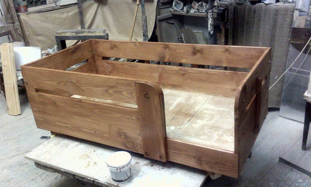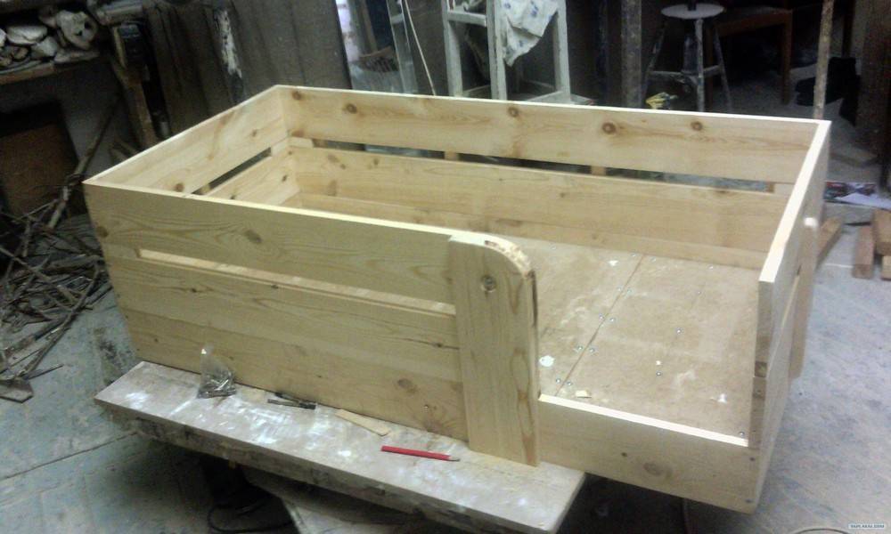 Наиболее простая — стандартная односпальная кровать. Для начинающих подойдет и формовочный вариант в виде машинки. При изготовлении понадобятся фигурные боковые стенки (в виде автомобиля, кареты, короны и т.д.).