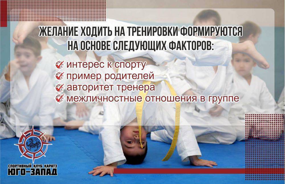 Намного проще не водить в спортивную школу ребёнка, чем водить. Ведь для того, чтобы посещать секцию карате родителям придётся подстраиваться под тренировочный процесс. Менять своё расписание, тратить время и силы, приобретать спортивную одежду и следить за её опрятным состоянием, переживаться за неудачи и сталкиваться с ленью ребёнка и ещё многие многие факторы. Решая эти «проблемы» взрослый человек знает для чего это нужно ему и его ребёнку, родитель мотивирован и ведёт своё чадо к определенной цели. Именно эту цель и нужно донести до ребёнка понятным, детским языком.