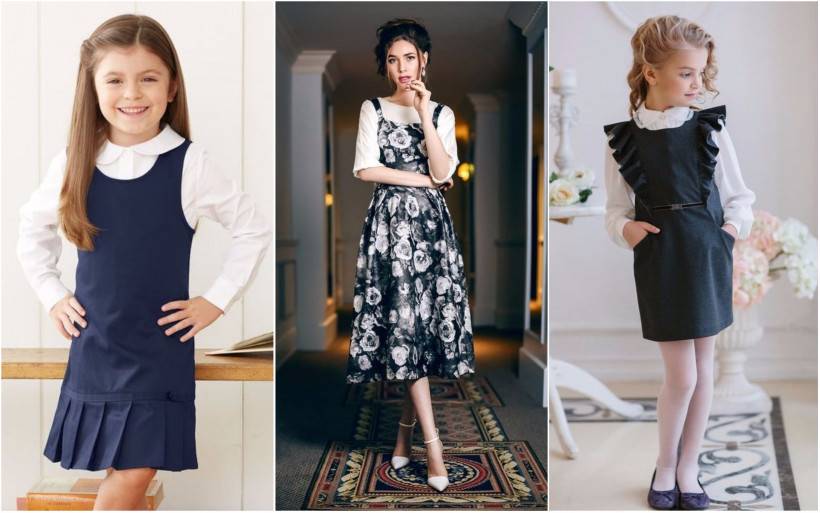 Оптимальным вариантом школьного наряда считается традиционное прямое черное платье. Весьма оригинально и привлекательно будут смотреться модели, где добавлены белые воротники и манжеты. Также на пике популярности будет платье футляр, платье-рубашка и платье с запахом.