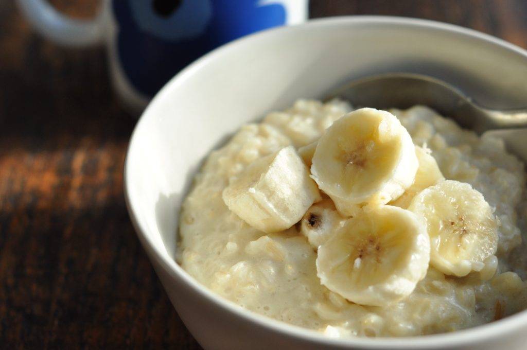 - Каша с бананом: сварите любую крупу, которую любите (гречневую, овсяную, рисовую), добавьте к ней кусочек сливочного масла и измельчённый банан (или пюре из банана)