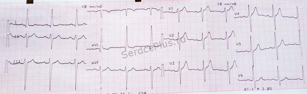 Рис. 1. Блокада левой ножки пучка Гиса в стандартных отведениях.