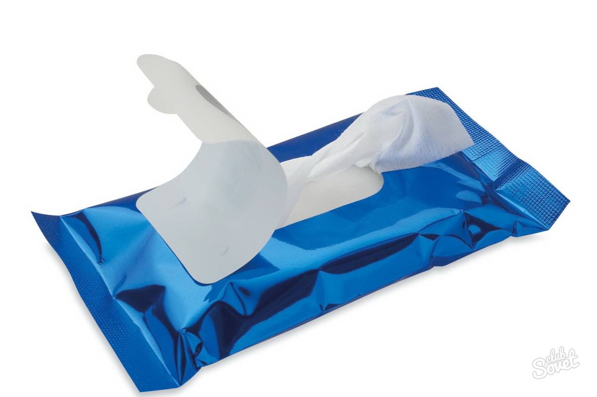 - Влажные салфетки. Это могут быть антисептические изделия, гигиенические или профильные для снятия макияжа. Главное, не тереть ими кожу слишком долго и после обработки обязательно сполоснуть очищенное место.