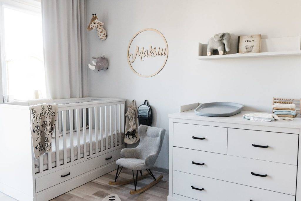 В комнате малыша не рекомендуется ставить много мебели, чтобы не было лишних острых углов и мест для сбора пыли. В обязательный список покупок для комнаты новорожденного входят: