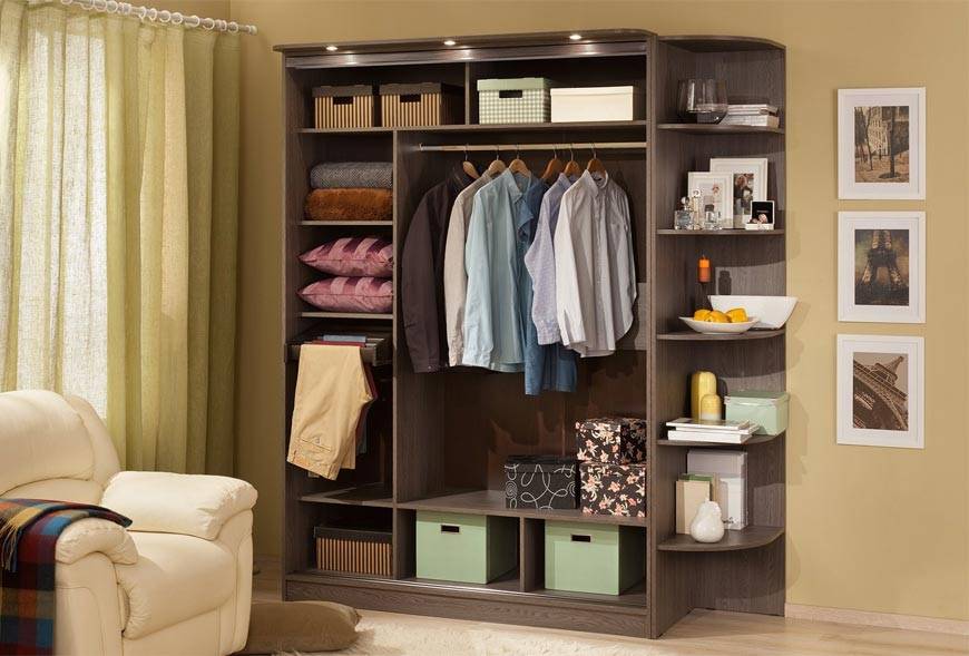 - Повседневная одежда – замечательно сможет расположиться на полочках.
