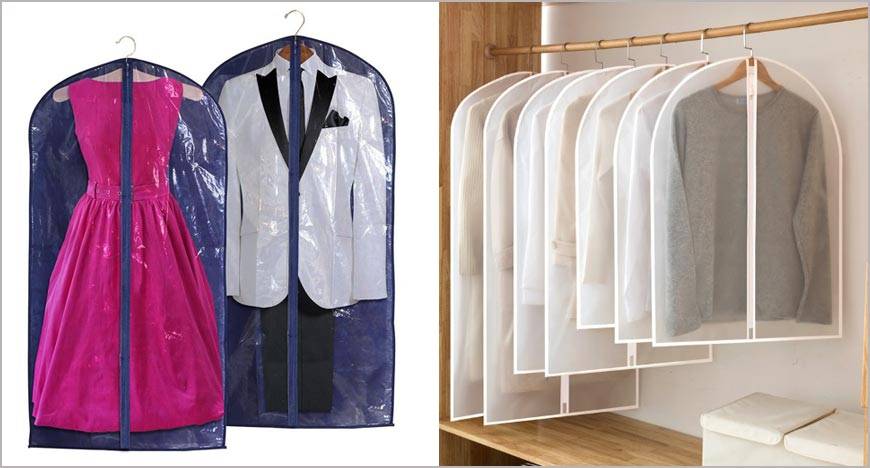 Вещи лучше хранить вертикально на вешалках. Блузки, рубашки, пальто надо застегнуть, расправить и закрыть чехлами от пыли.