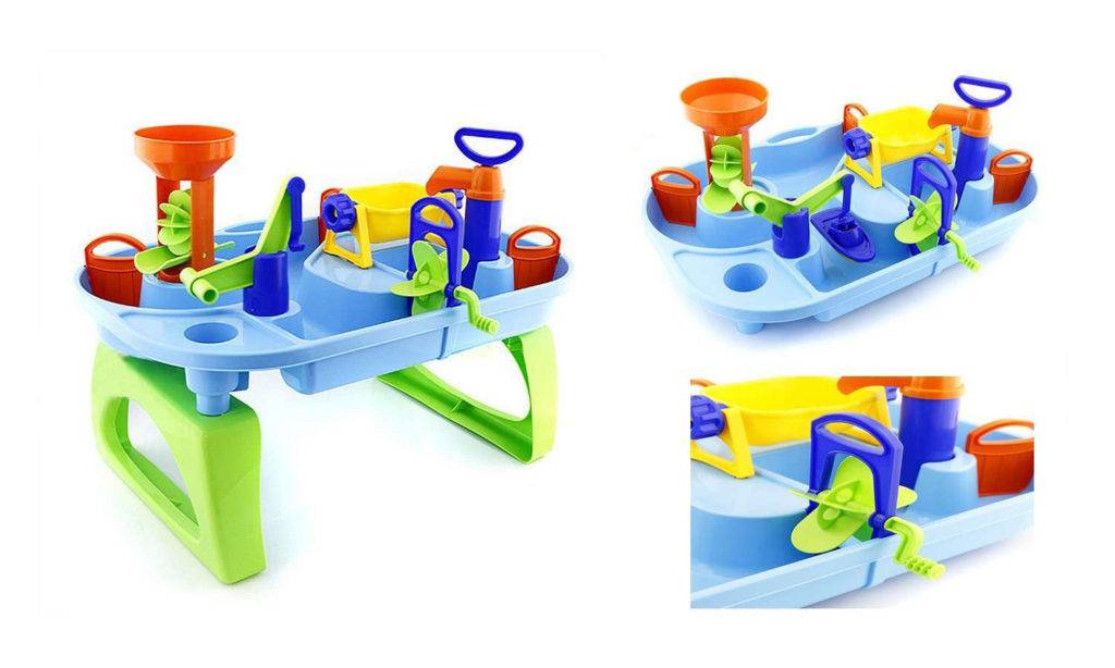 Интересный и увлекательный набор, доставит ребенку во время купания много удовольствия. Влияет на развитие моторики, фантазию, а также творческое начало. Последовательное собирание деталей в водной среде сильно заинтересовывает малышей. Конструктор представлен в виде столика. Его можно устанавливать не только в ванной. Миниатюрный порт с кораблем находится под властью маленького капитана. Малыш с легкостью может управлять судном, переливая воду и менять его направление. Водяная мельница и помпа служат препятствиями. Также в наборе имеются 2 шлюза и подъемный кран.