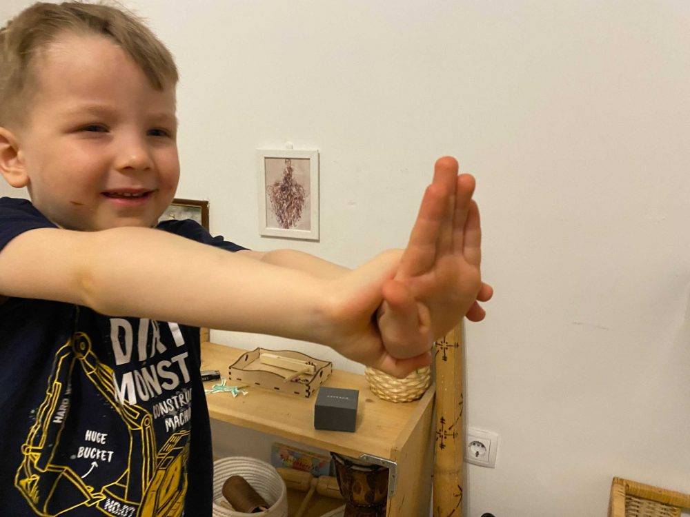 2. Демонстрируем решение: «Посмотри, что можно сделать». Выставляем обе руки вперёд, скрещёнными ладонями в сторону воображаемого обидчика и произносим: «Стоп! Шаг назад! Мне неприятно!» Это действие со словами повторяем несколько раз.