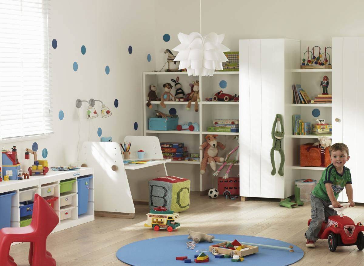 У кімнаті малюка дошкільного та раннього шкільного віку потрібно відвести для іграшок досить місця. Так буде легше наводити і підтримувати порядок. Поставте спеціальні стелажі, придбайте об’ємні ящики або кошики, щоб у всіх речей було своє місце. Психологи стверджують, що це найпростіший спосіб розвинути у маляти самоорганізацію і любов до чистоти.