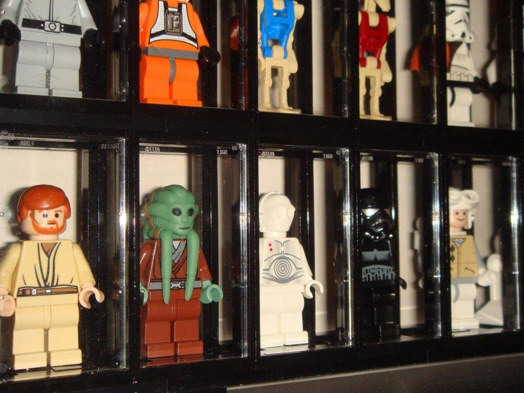 Есть дисплеи для 8 минифигурок и для 16 минифигурок. Есть отверстия для крепления к стене. Прозрачные, так что сокровища на виду. Минифигурки защищены от пыли, при этом передние крышки открываются, что очень удобно.