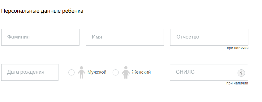 - Сведения о ребенке. Его Ф.И.О., СНИЛС и дата рождения.