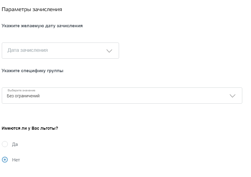 - выберите дату желаемого зачисления (учитывайте возраст ребенка);