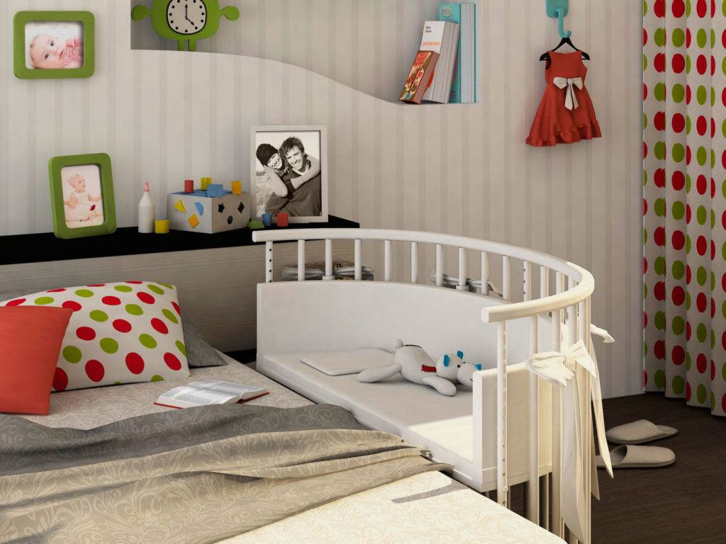 - Съемная перегородка позволит приставить кроватку к спальному месту родителей.