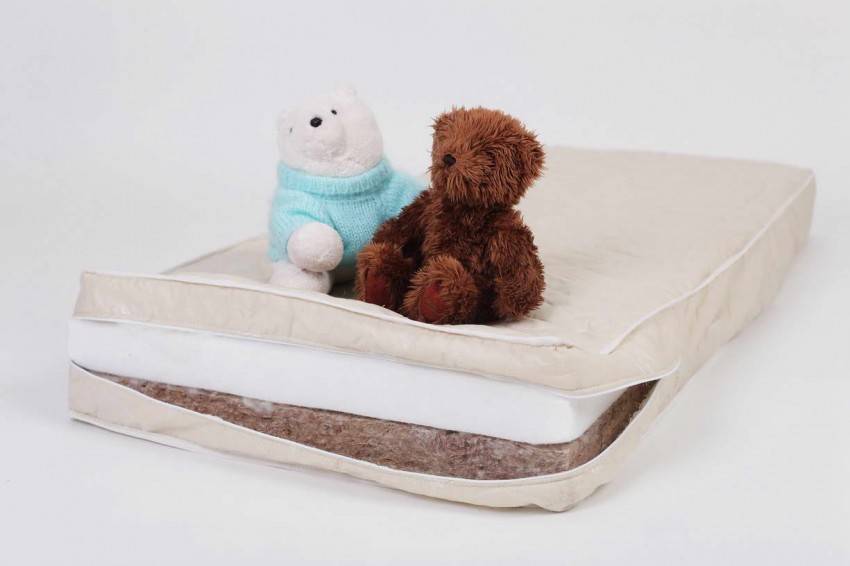 Предпочтительным вариантом для младенца является прессованное кокосовое волокно, придающее матрасу достаточную жесткость и обладающее антибактерицидными свойствами. Чтобы смягчить жесткую основу, приобретают кокосовые изделия в войлочной оболочке. Такие матрасы довольно дороги, альтернативой им являются многослойные матрасы смешанного типа. В них комбинируются различные материалы природного происхождения.