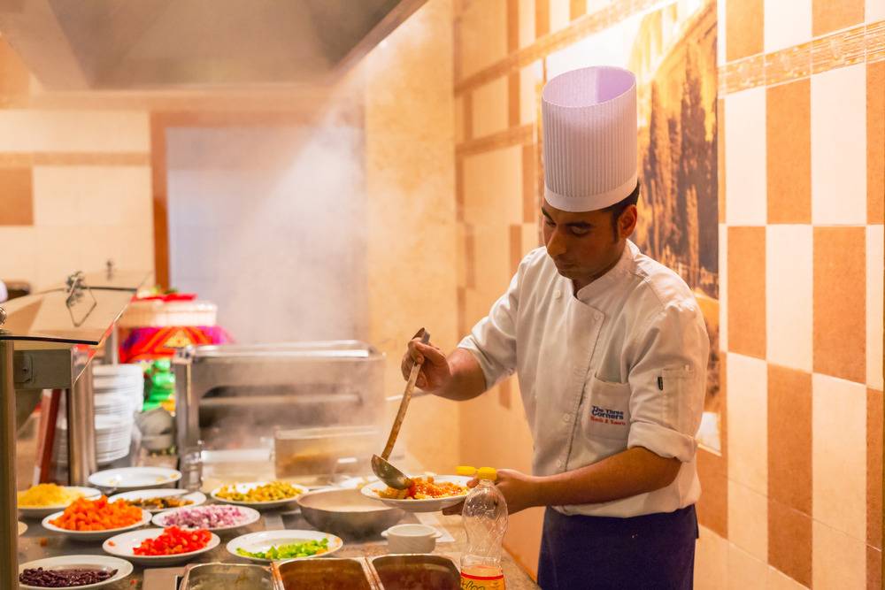 В главных ресторанах отелей питание организуется по системе «шведский стол» — то есть вы можете выбирать любые понравившиеся блюда, ни в чём себя не ограничивая. Как правило, на завтрак туристов приглашают с 7 до 10 часов утра, на ужин — с 19 до 22.