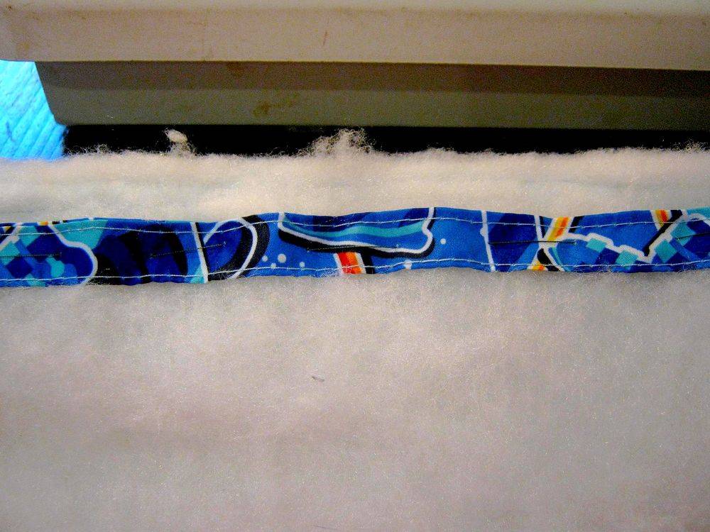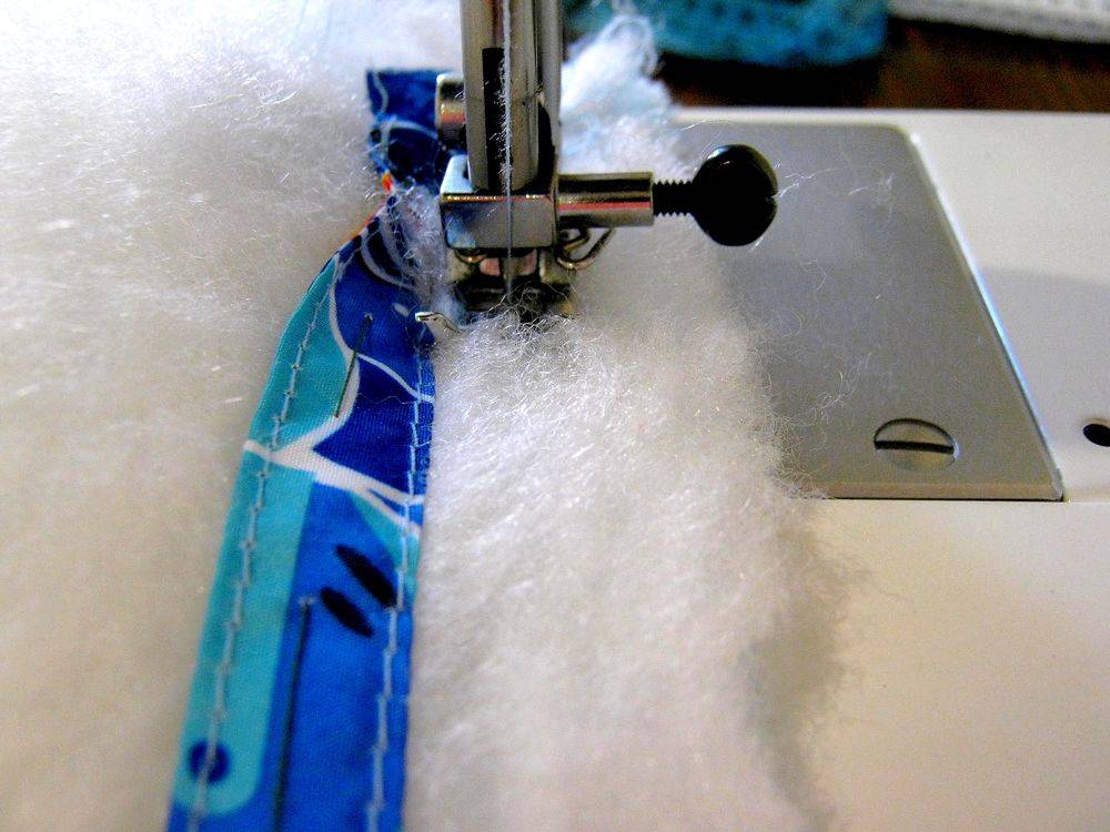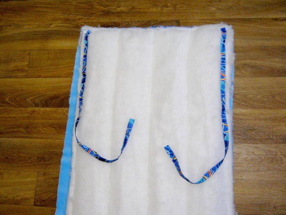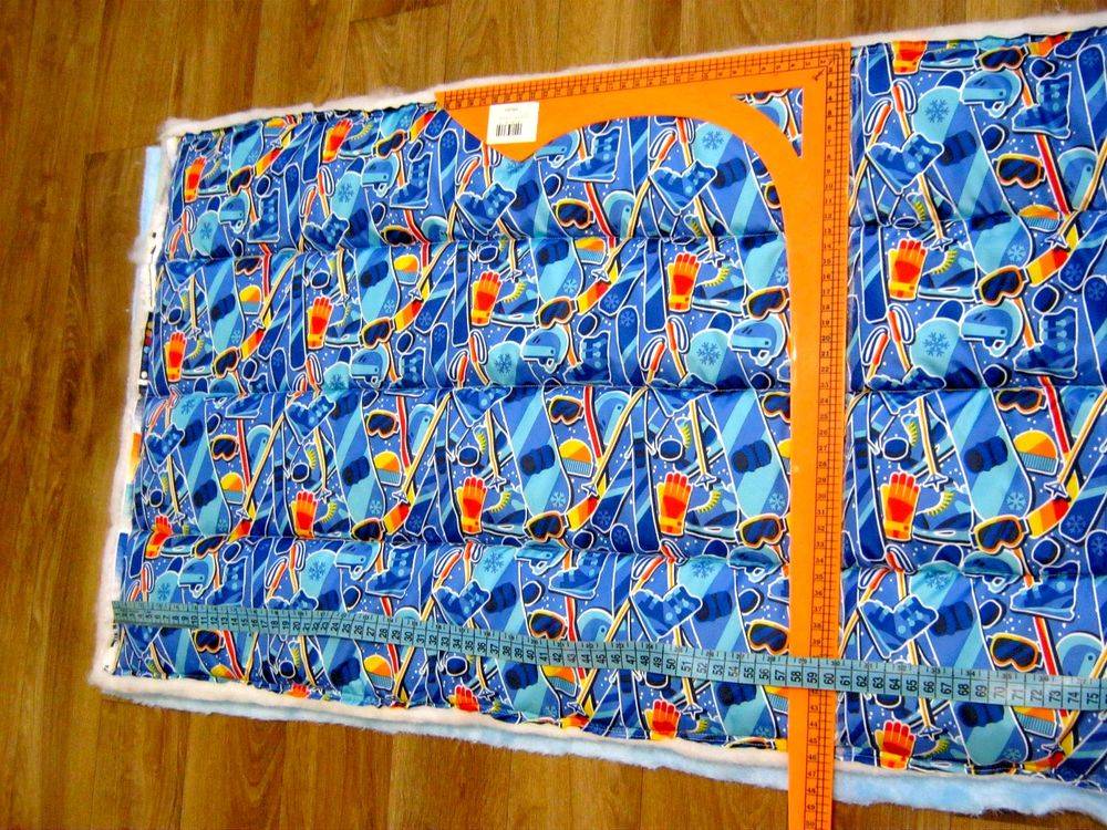 - соединить две части заготовки-прямоугольники, вложить внутрь нужное количество слоев утеплителя и сшить