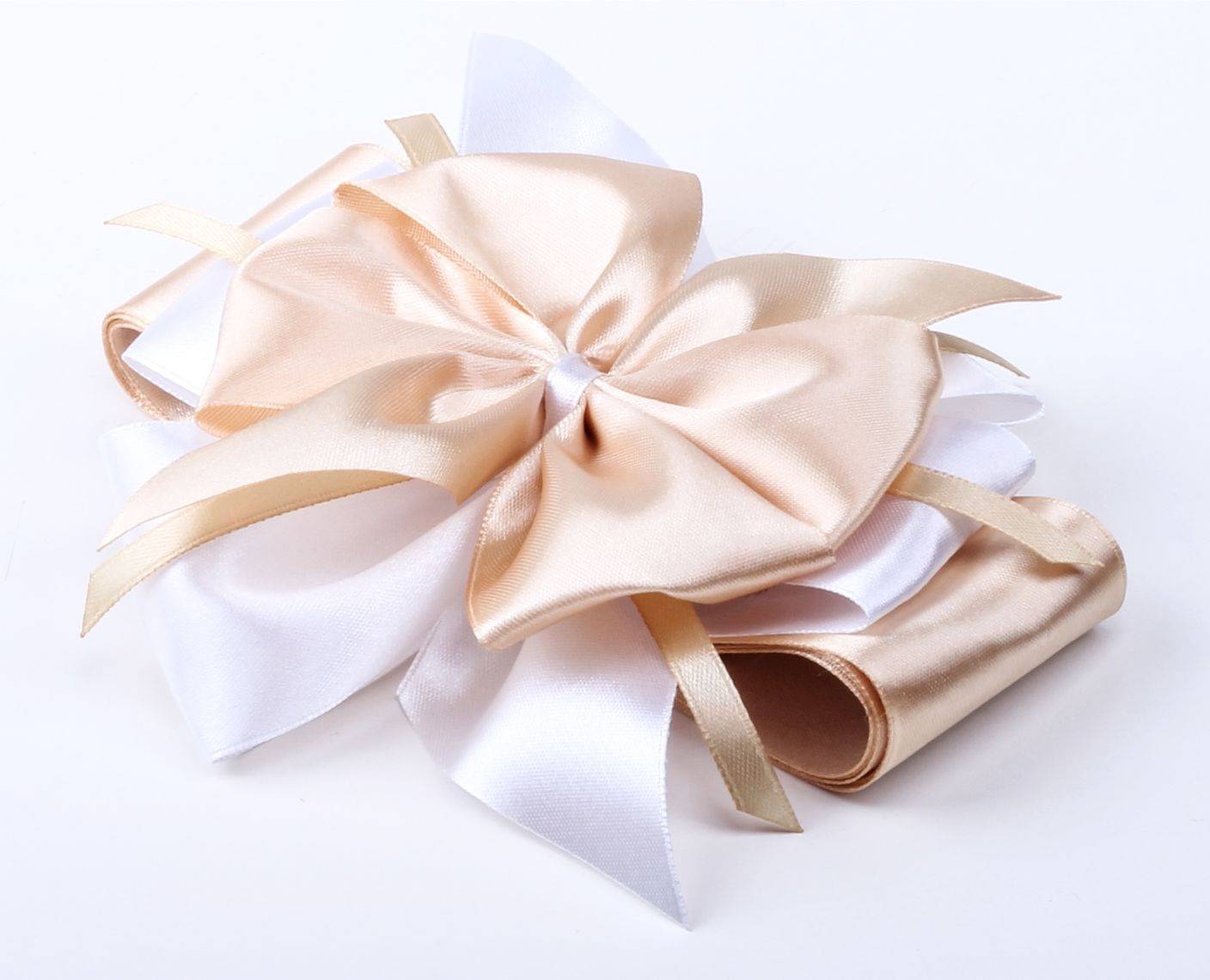 - Чтобы «пояс» получился функциональным, в получившуюся ленту вставляем резинку, и пришиваем объемный бант с холлофайбером. «Перемычку» для банта можно сделать из любой ленты или тесьмы. Очень эффектно смотрится отделка из кружева.