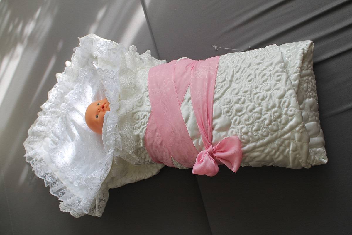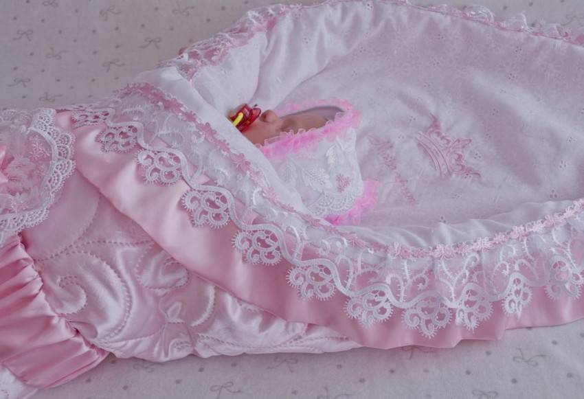 - Самостоятельно сшитый конверт будет выделяться своей уникальностью, особенно в момент выписки из роддома.