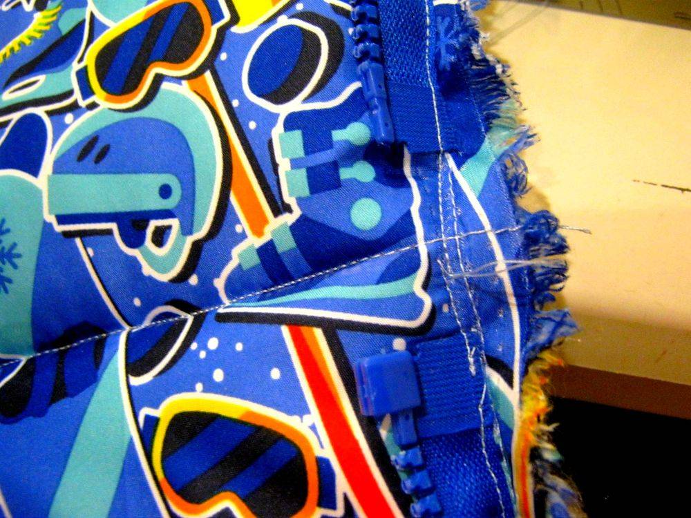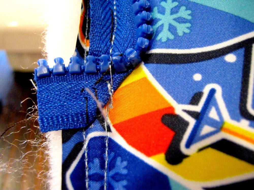 - по бокам одеяла внизу, начиная от середины, пришить детали разъемной молнии