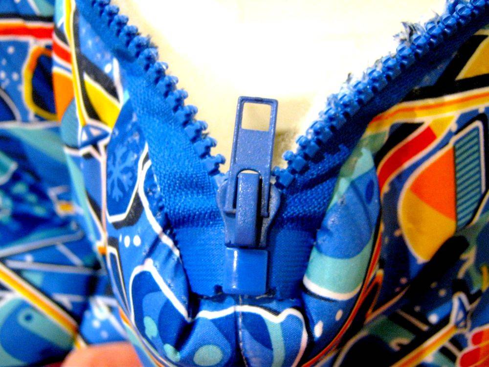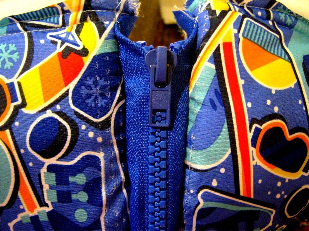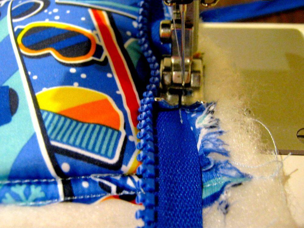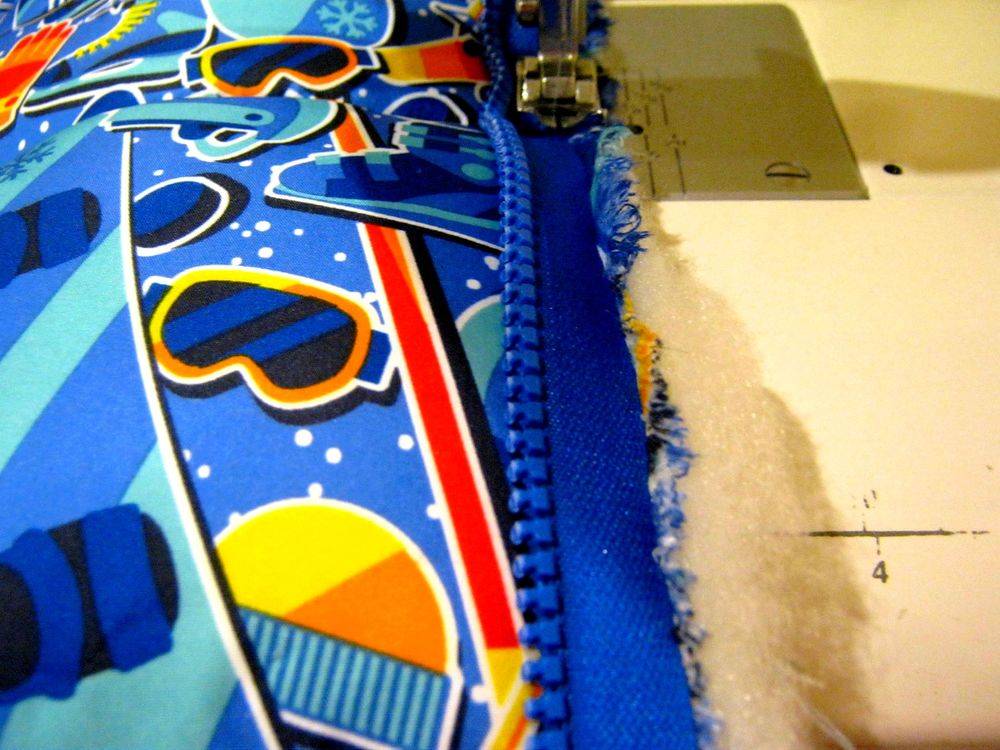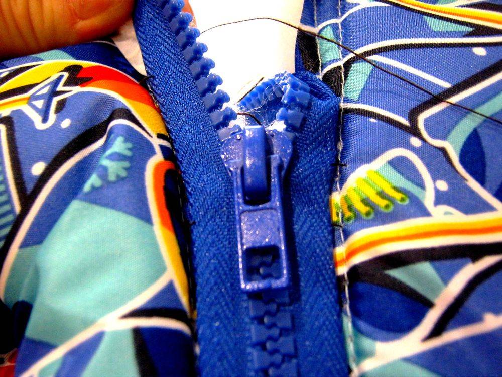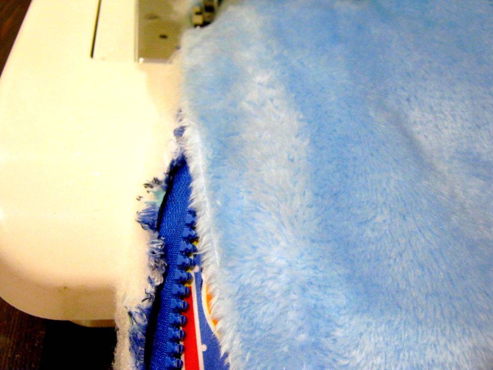 - осталось вшить молнию: разъемную внизу в районе ножек малыша, обычную – вверху для присоединения капюшона.
