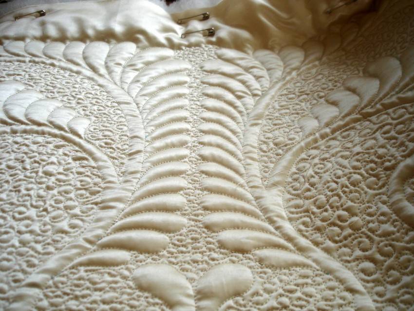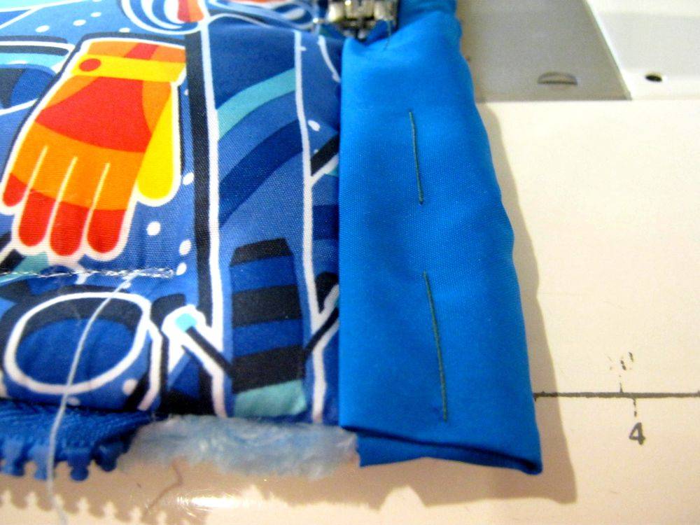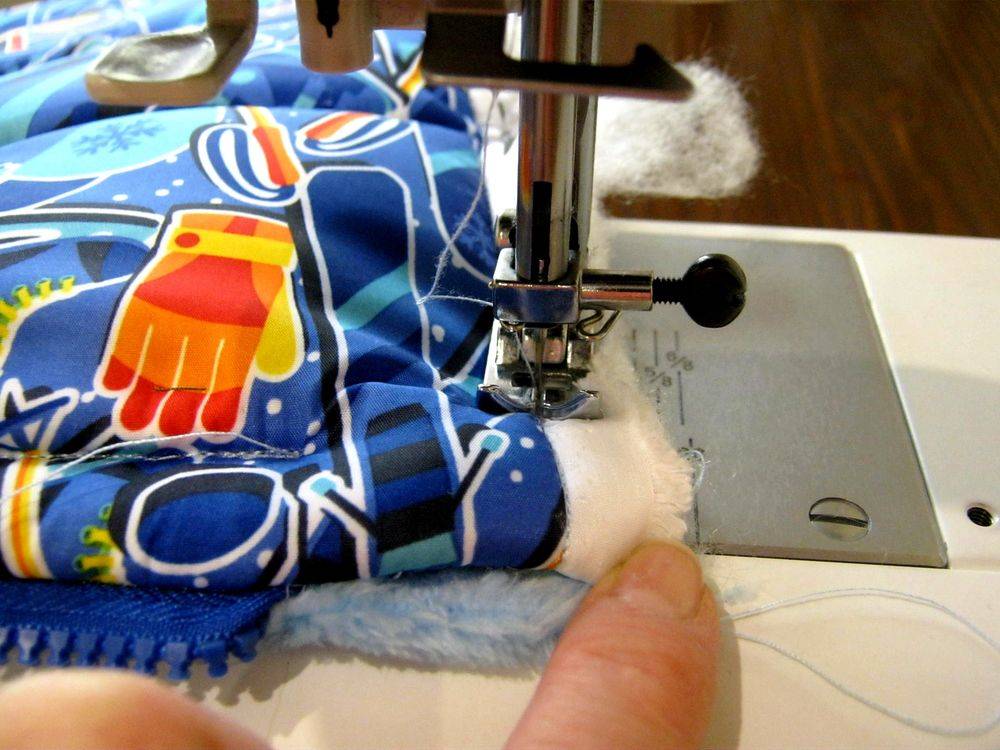 - Теперь прошить между собой на машинке наружный слой, утеплитель и подкладку.