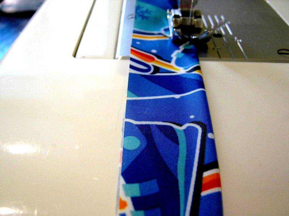 - Вырезаем из атласной ткани две полоски шириной 12 см.