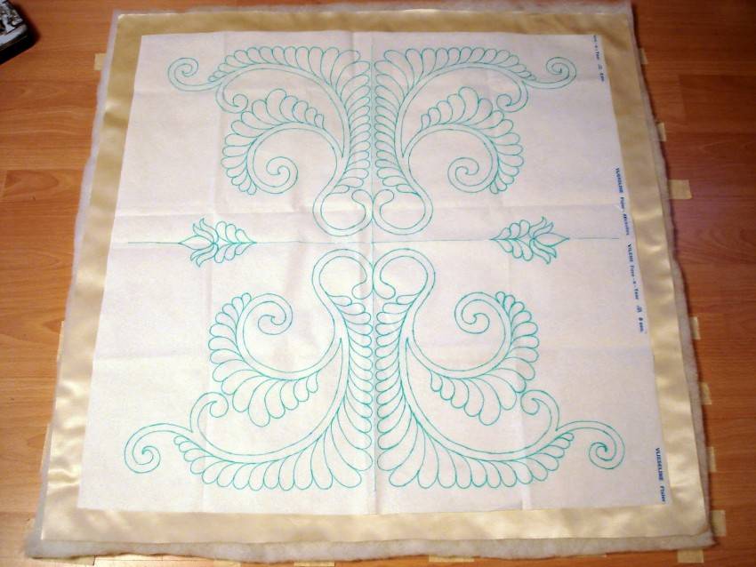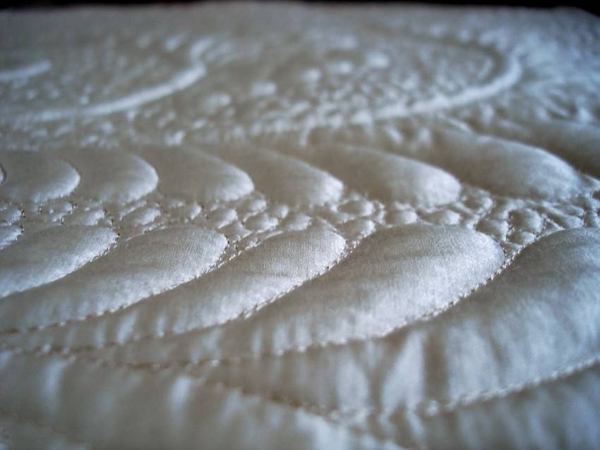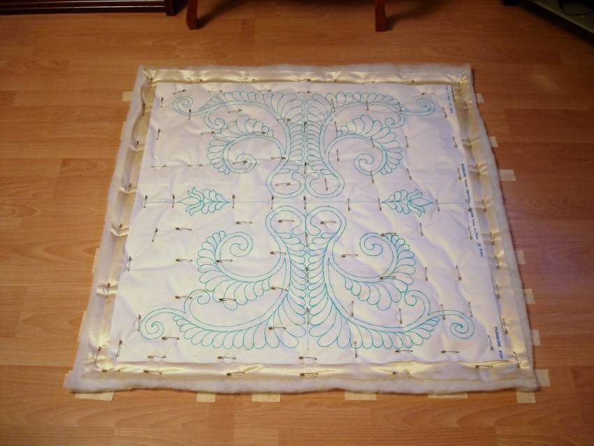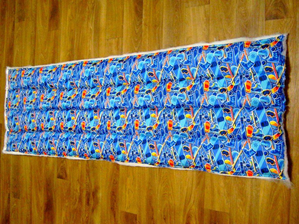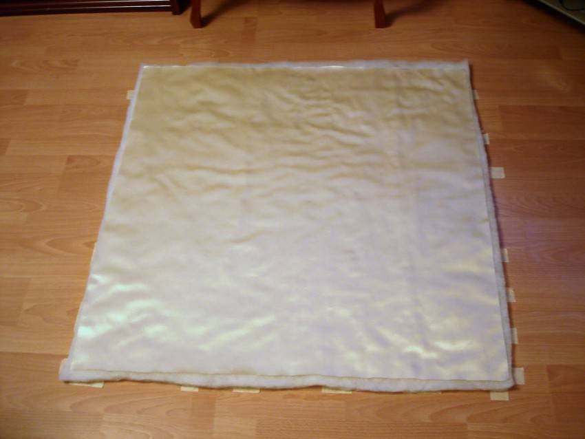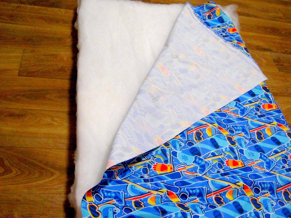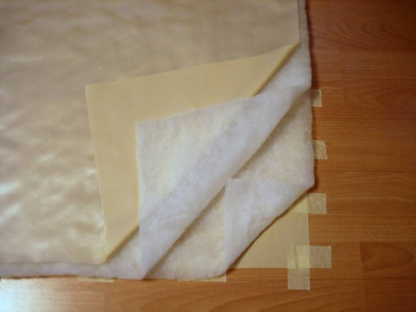 - Из синтепона вырезается полотно. Зимнее одеяло трансформер может изготавливаться с несколькими слоями наполнителя. Синтепон пришивается к наружному фрагменту ткани.