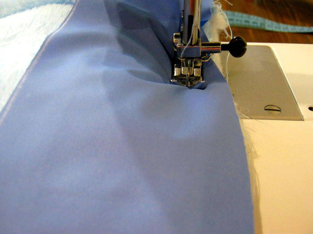 - Прострачиваем сверху и снизу, а затем выворачиваем и наполняем холлофайбером.