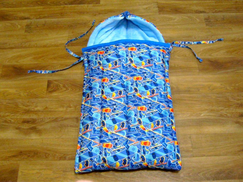 - Для самых маленьких лучше пошить конверт-кокон, способный запеленать ручки. Так ребенок не раскутается и не повредит себе ничего;