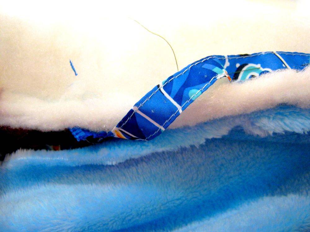 - короткая молния-застежка, предназначенная для образования колпака пришивается сверху, от центра одеяла