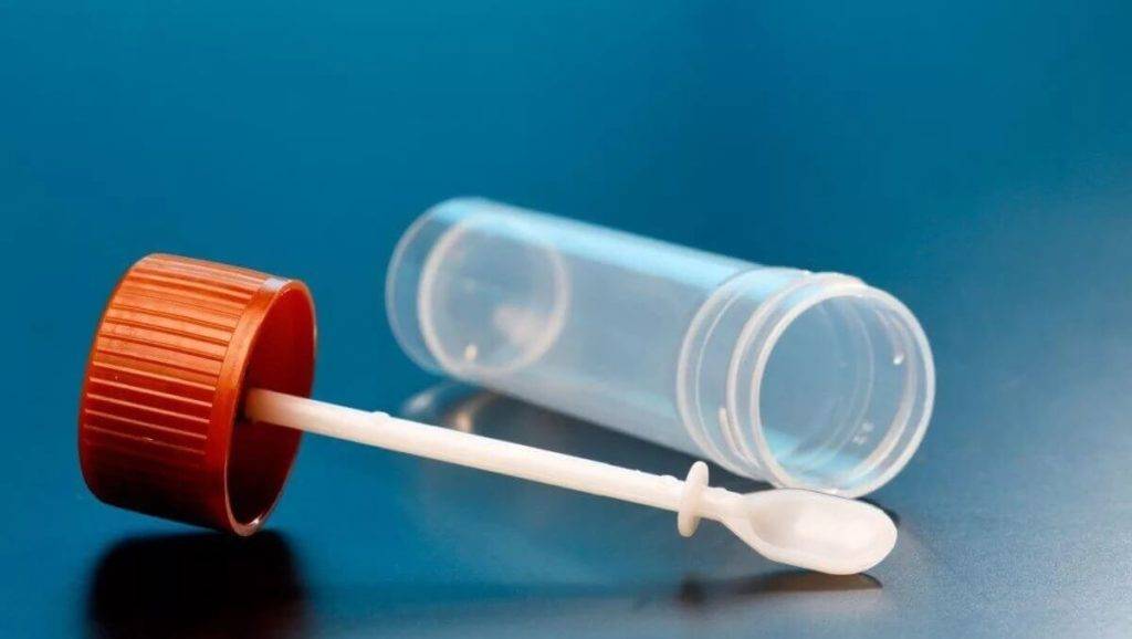 Кал собирается после самопроизвольной дефекации в одноразовый пластиковый контейнер с герметичной крышкой и ложечкой-шпателем для отбора пробы. Следует избегать примеси к калу мочи и отделяемого половых органов.