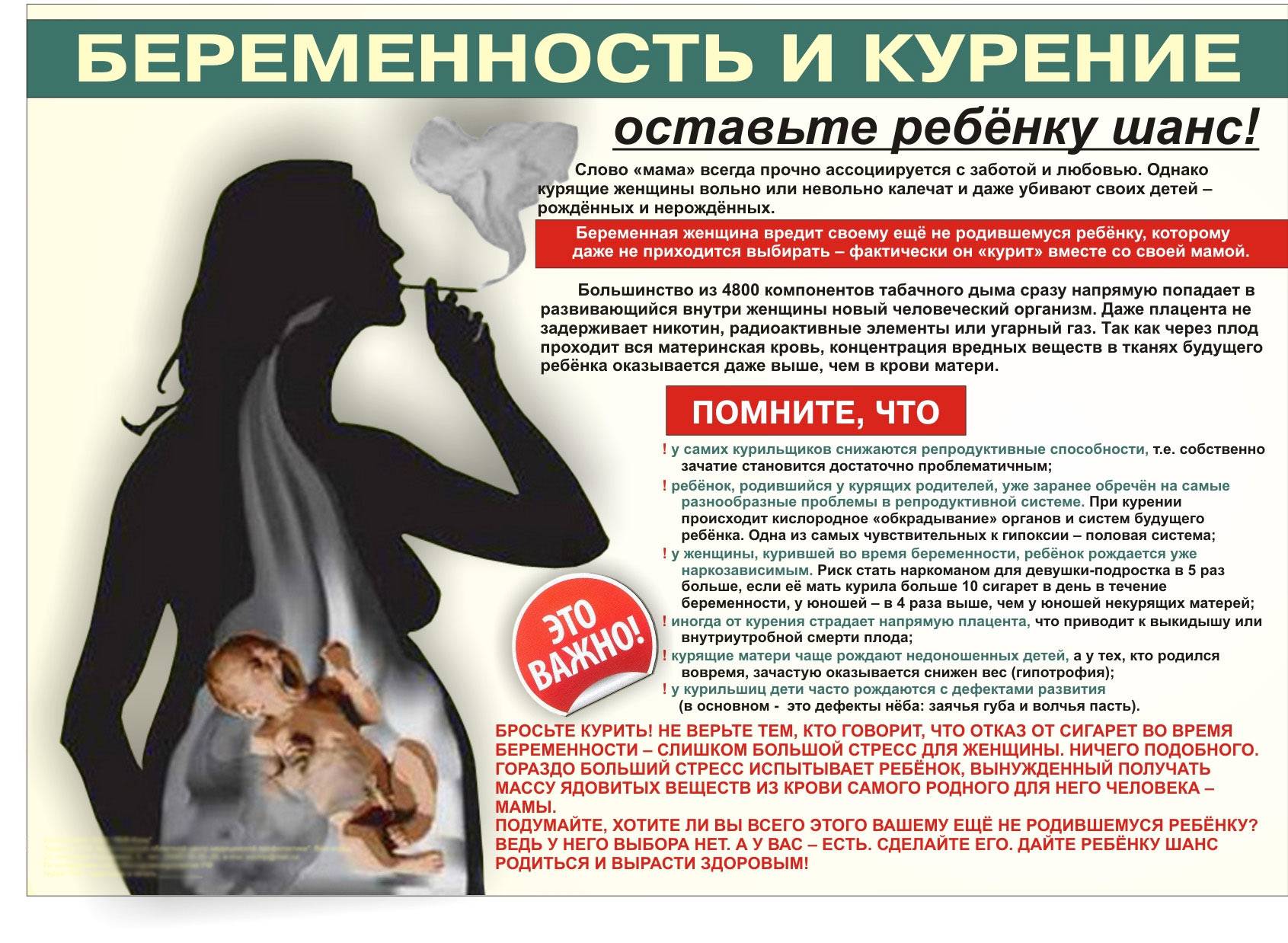 Никотин очень вреден для здоровья и матери, и ребенка. Это вещество вызывает сужение сосудов, в результате нарушается кровоснабжение плода, а также могут происходить различные сбои в развитии.