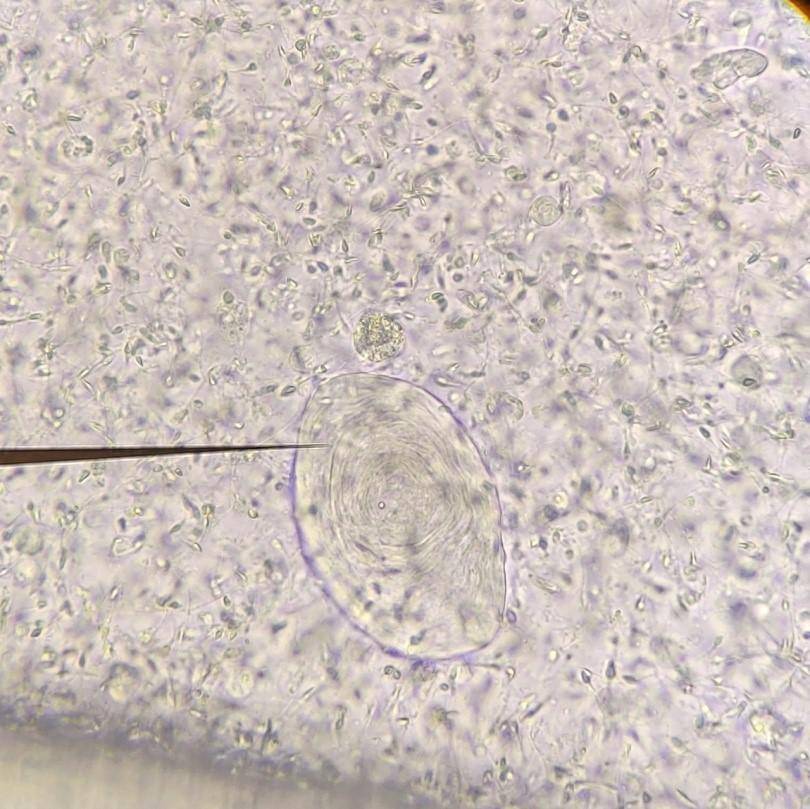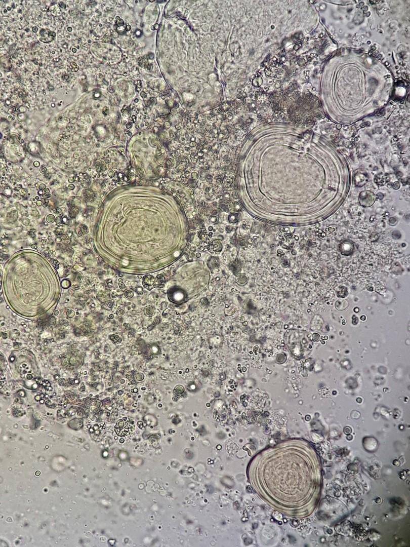 Фото лецитиновых зерен в соке простаты под световым микроскопом (увеличение в 400 раз)