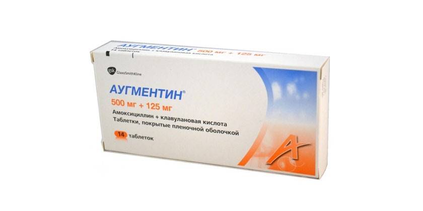 Кроме амоксициллина в состав Аугментина входит клавулановая кислота, благодаря которой расширяется лечебный спектр антибиотика. При лечении малышей в возрасте до года применяют препарат в каплях, детей до 12 лет – в виде сиропа (суспензии).