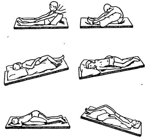 При бронхиальной астме и хронической обструктивной болезни легких перед упражнениями желательно предварительно воспользоваться бронхорасширяющими средствами (беротек, сальбутамол, беродуал). Через 20-30 мин. после этого больной поочередно занимает положения, описанные ниже.