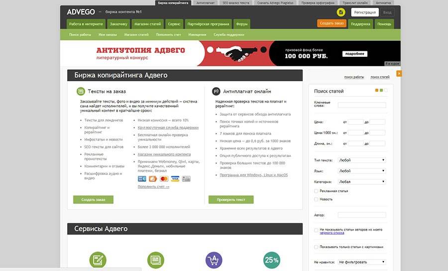 Новичкам биржа предлагает выполнить тестовые задания на грамотность, владение русским языком и знание его правил. Только 10 % от числа всех претендентов получает возможность здесь зарабатывать на создании контента.