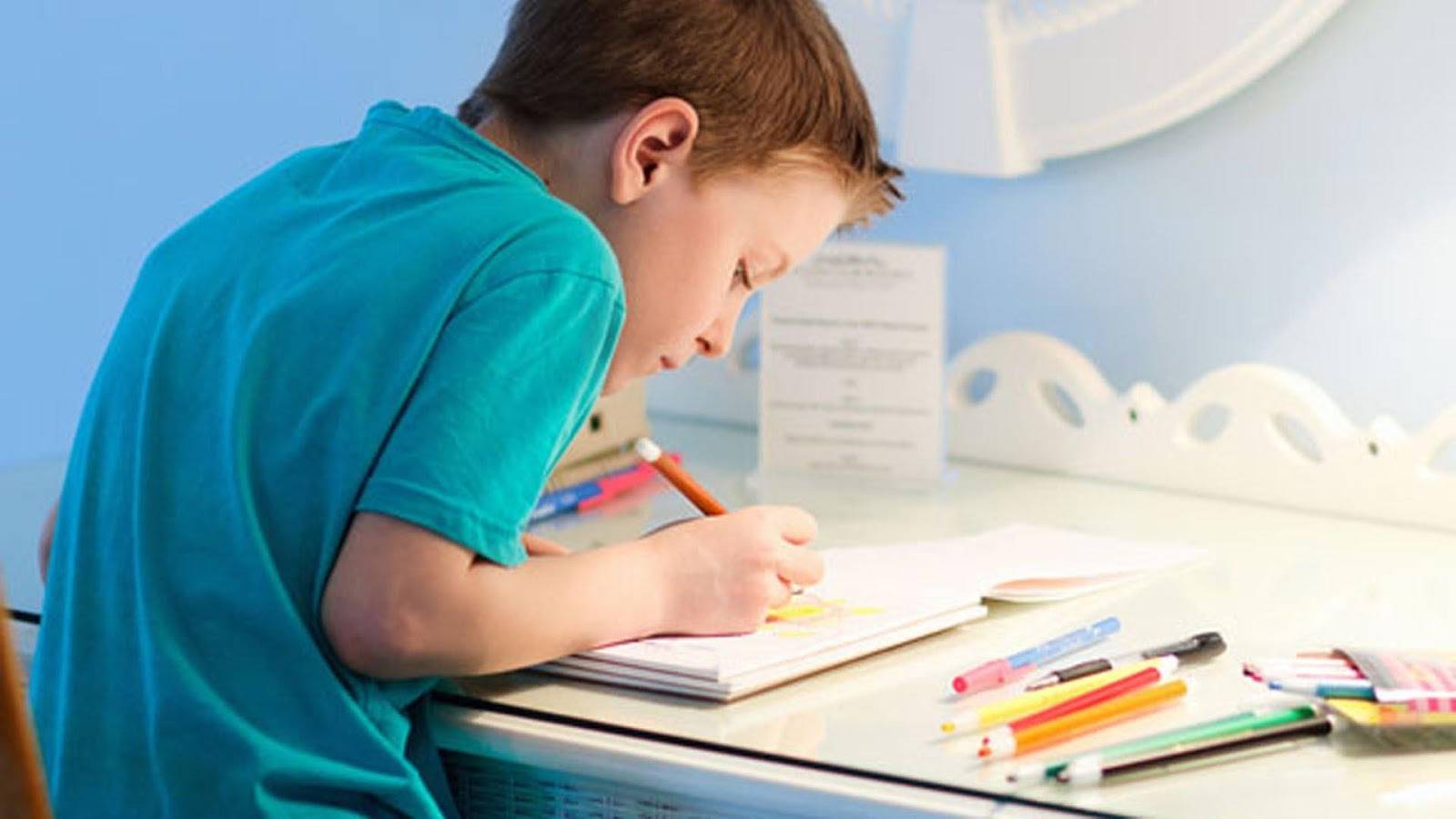 Высота стола должна быть на 2-3 см выше локтя опущенной руки вашего чада, когда он сидит. Высота стула не должна превышать высоту голени. Если ноги не достают до пола, надо подставить скамейку, чтобы тазобедренные и коленные суставы были согнуты под прямым углом. Спина должна вплотную касаться спинки стула, сохраняя поясничный изгиб. Чтобы расстояние от книжки до глаз не превышало 40 см, книгу лучше поставить на пюпитр, тогда голову не придется наклонять. Неправильная поза при работе за столом очень портит осанку!