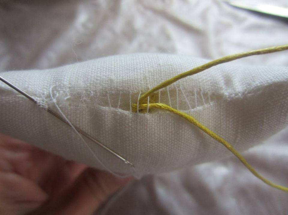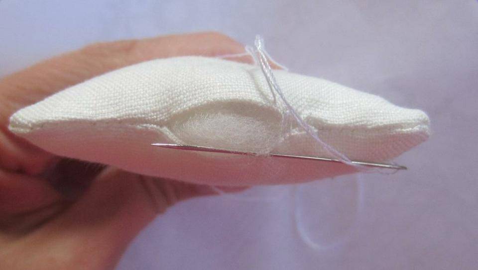С помощью нитки с иголкой мелкими стежками прошиваем насквозь и утягиваем материал.