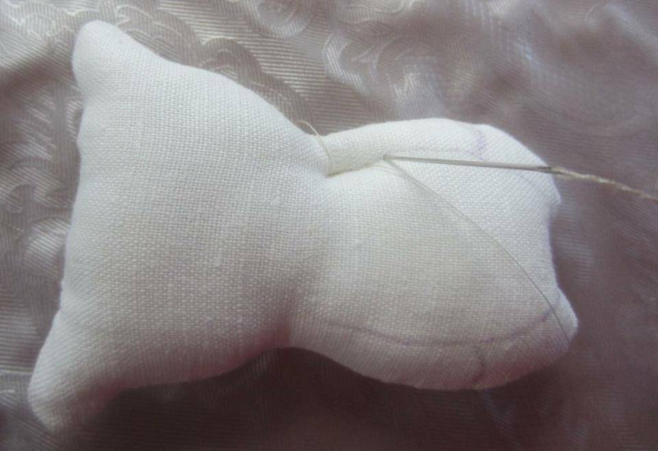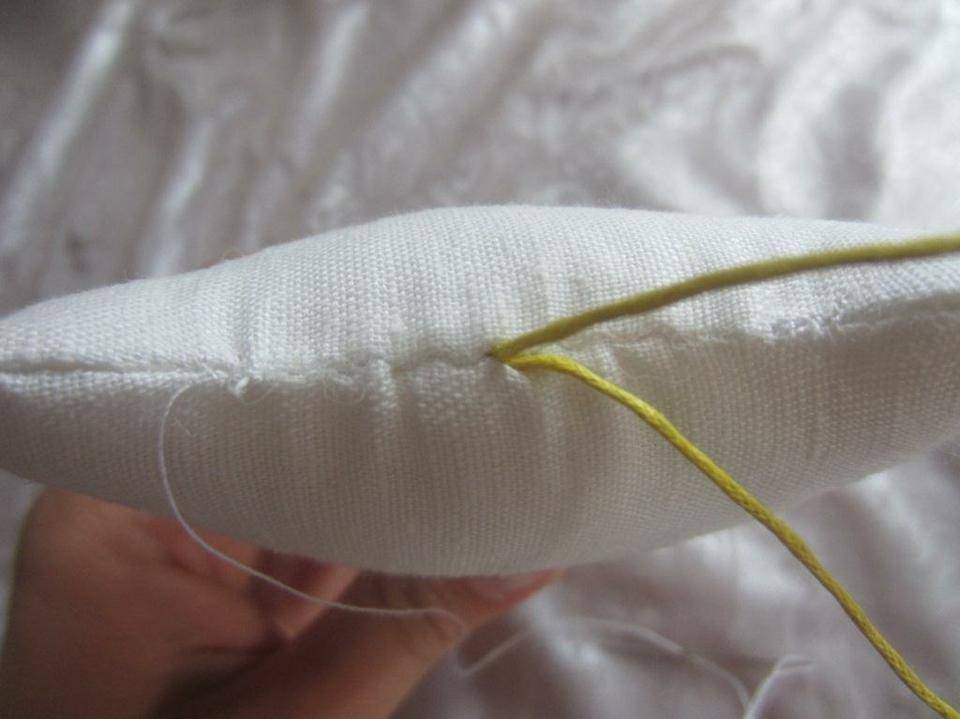 Узелок вложите в отверстие в игрушке и зашейте потайным швом.