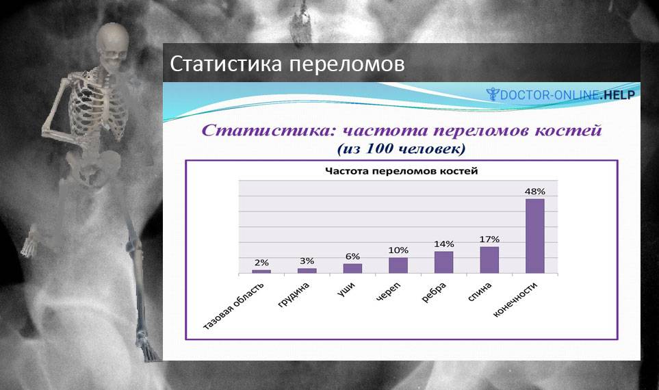 Переломы в реальной жизни сочетаются с повреждением разных органов и систем организма. Такие заболевания в медицине называют сочетанными травмами. Например, при переломах ребер развивается плеврит, а при повреждении костей черепа — внутримозговые гематомы.