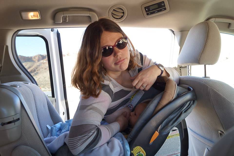 Одно из применений позы с нависанием — кормление ребенка, находящегося в автокресле.
