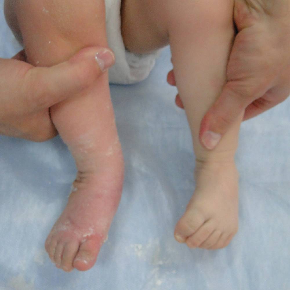 При косолапости стопа новорожденного ребенка подвернута вниз и внутрь. Это не вызывает неприятных ощущений, но без лечения с возрастом мешает нормальной ходьбе и причиняет боль. Косолапость — это относительно распространенное явление. Примерно половина всех случаев приходится на двустороннюю косолапость.