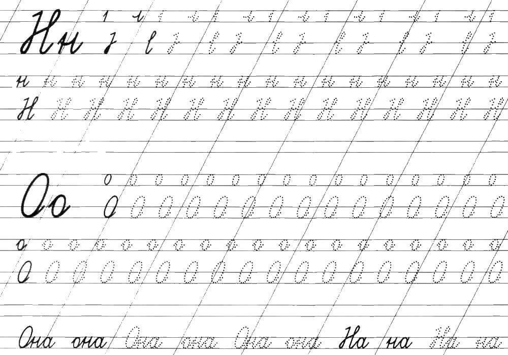 - Ноль — это овал, который немного наклонен вправо. Начальная точка ставится ниже верхнего правого угла.