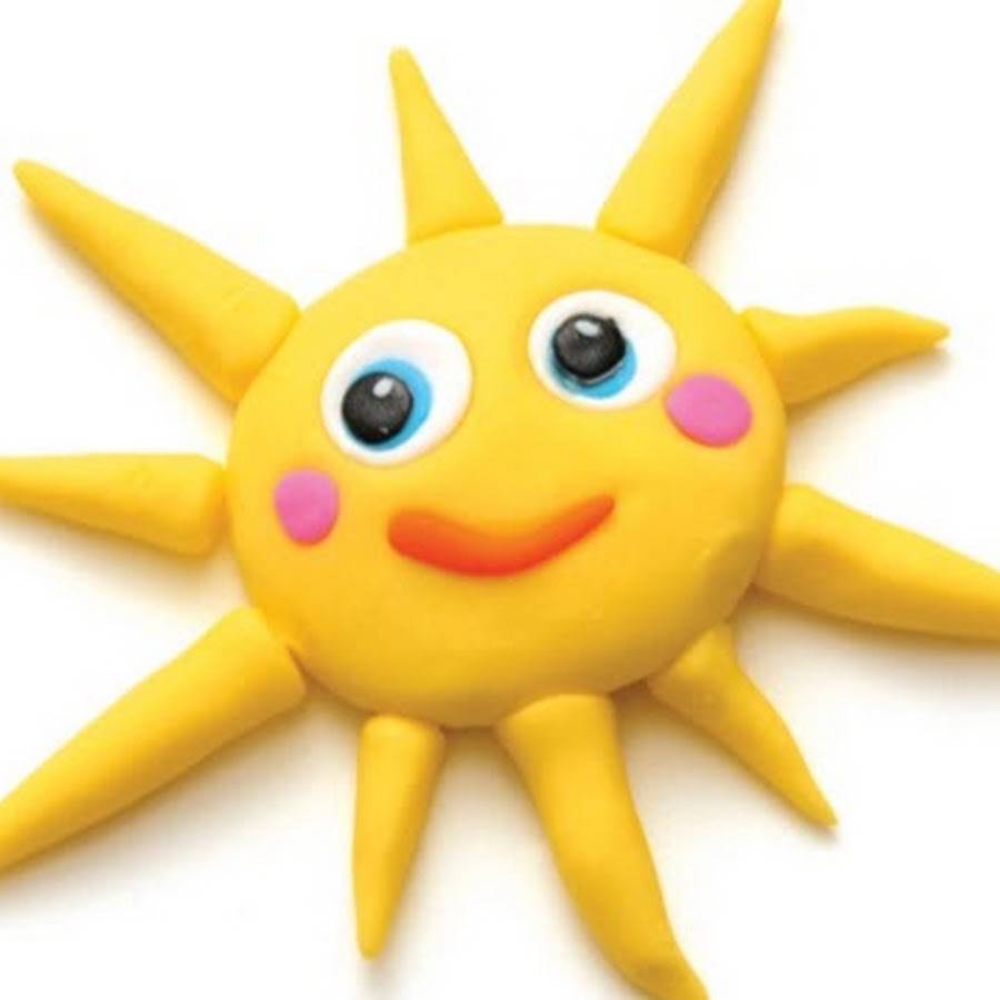 Скатать кусочек в шарик. Оторвите или отрежьте часть пластилина и по кругу катайте между ладоней, либо по часовой стрелке на не липкой поверхности. Можно взять желтый цвет и создать колобка или солнце. В первом случае помогите сделать шарику глаза и рот, во втором — тонкие лучики. Несколько скатанных элементов легко превратятся в гусеницу.