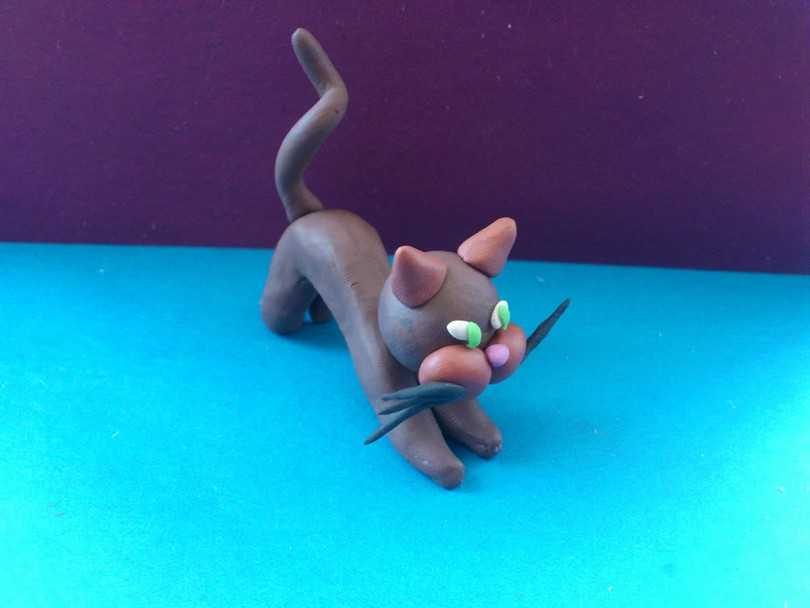 Если ребенок уже научился обращаться с пластилином, вместе с ним можно слепить аккуратную фигурку котика. Процесс ее создания состоит из следующих этапов.